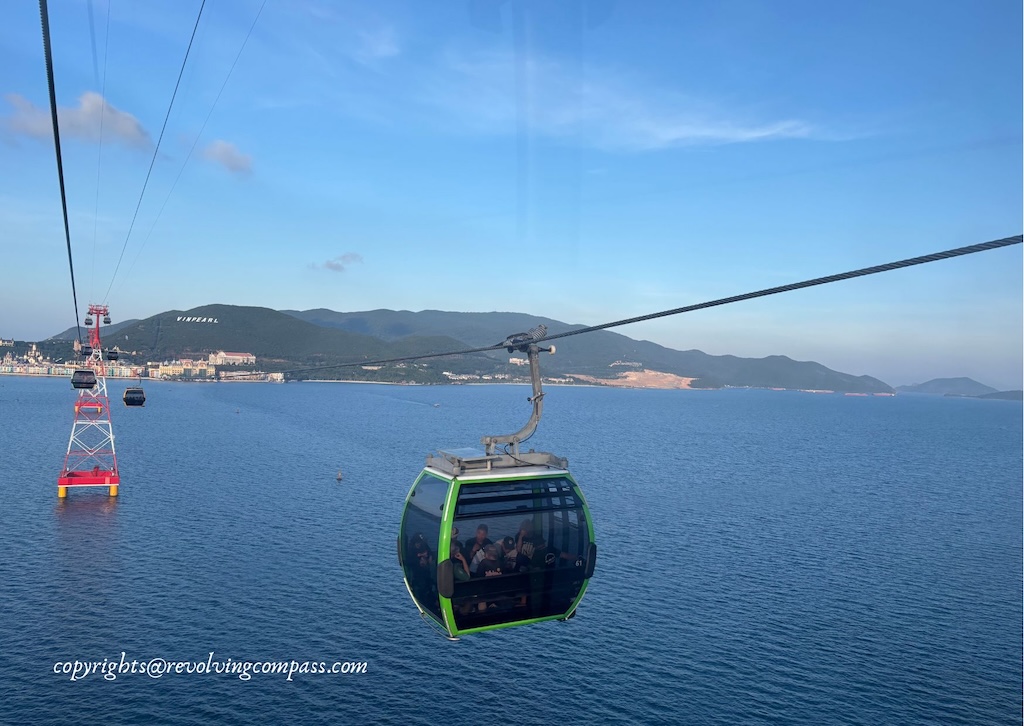 Luckily , there was no rush at the cable car station around 5:00pm as we reached here. We took our tickets from the ticket counter at the entry. And headed inside. Soon we boarded the cable car to the Hon Tre Island.