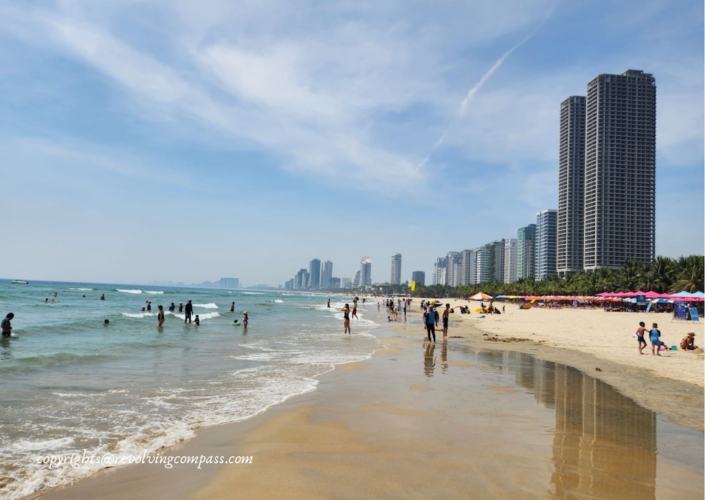 Finally on the fourth day of our 4 days Da Nang trip itinerary, we explored Da Nang. Most of our time today we spent on the My Khe Beach. The beach has one of the softest sands and clear shallow waters which are perfect for swimming. The beachside is dotted with day beds available at a nominal cost for the day. Along with changing rooms and shower areas. Which makes visiting the beach a breeze.