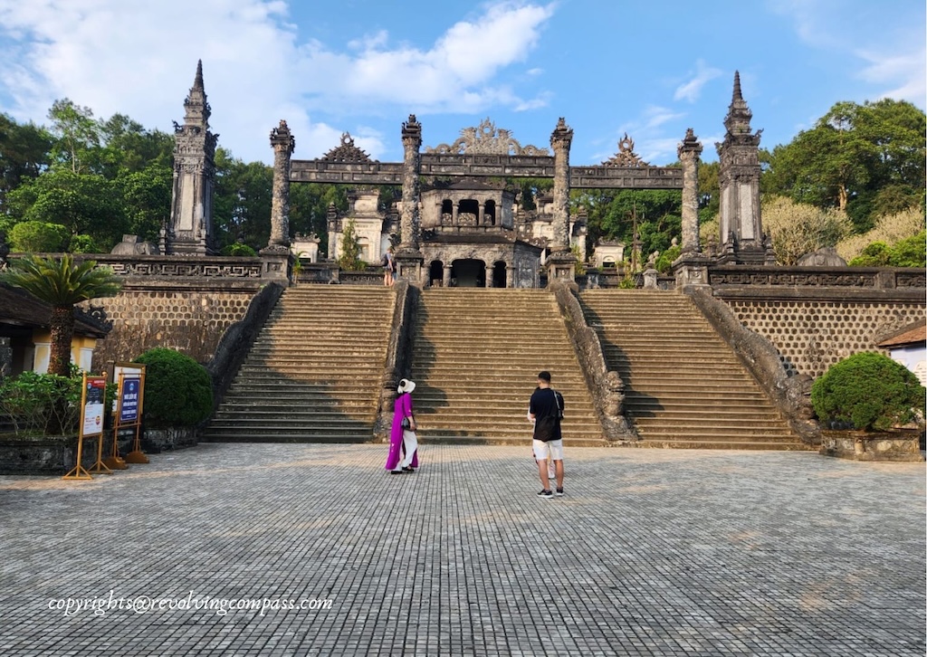 Next we visited the Hue Mausoleums. The Hue Mausoleums, also known as the Royal Tombs of the Nguyen Emperors, are a series of grand, architecturally distinct burial sites located along the Perfume River near Hue. Each tomb reflects the personality and legacy of the emperor it was built for, blending traditional Vietnamese design with elements of Chinese and European styles.