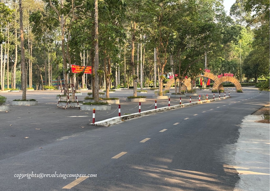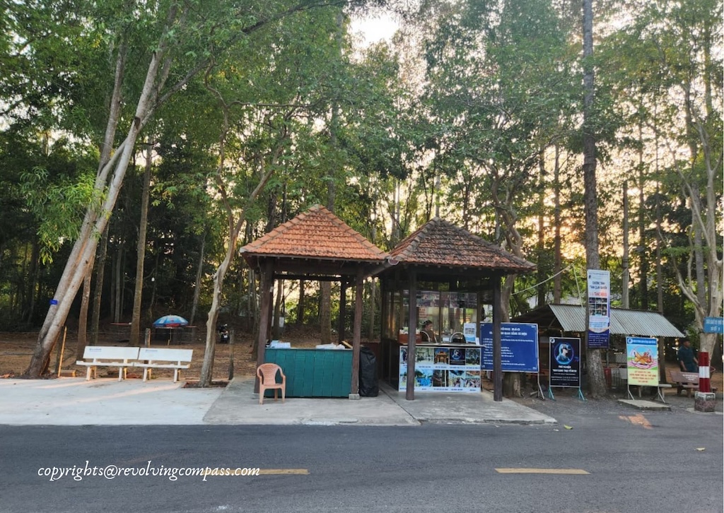 At the Cu Chi Tunnel ticket counter, we took the entry tickets. Right besides the Cu Chi Tunnel ticket counter, you have electric buggies available. Which can give you a ride to the main entry gate (almost 300 meters from the ticket counter) at a nominal additional cost. However, we decided to give it a pass. And walked to the Cu Chi Tunnel entry gate. The whole road is dotted with dense trees on both sides. And an instagram worthy landscaped garden on the way.
